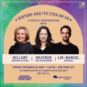 This very special event is scheduled for Tuesday, November 18th, 2025, at 7pm, in New York City. In-person and virtual playback tickets are available for purchase. This event is sponsored by two great organizations: Onward Together and Latino Victory Project. Click the image below to purchase your virtual pass today!